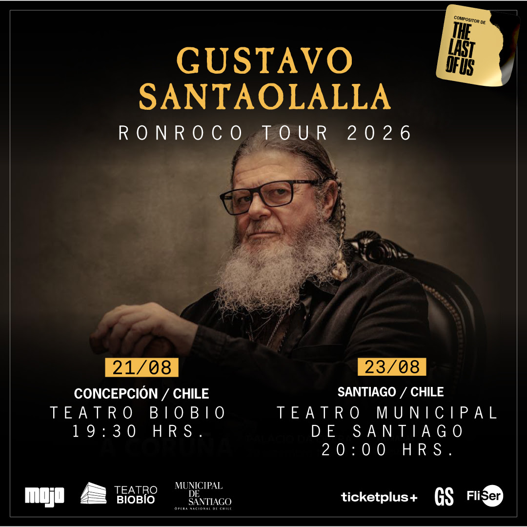"Roncoco Tour": Gustavo Santaolalla regresa a Chile con shows en Concepción y Santiago Además dictará una clase magistral Miércoles, 22 de Abril de 2026 El icónico músico y productor argentino Gustavo Santaolalla, regresa a Chile con su “Roncoco Tour”, que lo tendrá presentándose en vivo el 21 de agosto en el Teatro Biobío de Concepción; y el 23 de agosto en el Teatro Municipal de Santiago. Ambas locaciones significan una visita especial para el artista, quien pisará por primera vez dichos escenarios y en el contexto de su gira sudamericana, que además contempla fechas en Colombia y su natal Argentina. Creador de sonidos que marcaron generaciones y precursor del rock argentino en Arco Iris y como solista, Santaolalla pretende realizar un recorrido íntimo y poderoso por el repertorio que ha marcado su carrera. Lo anterior, centrándose en las piezas de su disco “Roncoco” (1998), en el que hace dominio del instrumento con el mismo nombre del álbum, de origen andino, –específicamente de Bolivia–, perteneciente a la familia del charango, con el tamaño de un ukulele y característico por sus cinco cuerdas dobles. Este trabajo discográfico lo llevó al reconocimiento internacional y le significó participaciones en diversas películas. El tema ‘Iguazú’ es parte de “The Insider” (1999), de Michael Mann; lo mismo que para la premiada “Babel” (2006), dirigida por Alejandro Gonzalez Iñarritu y que le valió un Óscar por “Mejor Banda Sonora”. Asimismo, ‘De Ushuaia a La Quiaca’ formó parte de la banda sonora de “Diarios de Motocicleta” (2004) de Walter Salles. “El hechizo de este álbum sucede dentro de un parámetro musical minimalista, un rango sutil y simultáneamente, expansivo y majestuoso. Como el paisaje de donde proviene el ronroco, los Andes, territorio natural de este instrumento hasta entonces prácticamente desconocido”, acuñara el aclamado director cinematográfico, Alejandro Gonzalez Iñarritu, quien trabajó con el músico argentino y en el contexto del 25º aniversario de esta producción musical. Entradas disponibles para ambas fechas en sistema Ticketplus: Concepción/ Santiago El artista además confirmó que dará una Masterclass en Teatro CA 660, titulada “La Música como Identidad y Puente Cultural”, en torno a sus procesos creativos. La clase maestra serpa el sábado 22 de agosto a las 19 horas, en el Teatro CA 660 de la capital. Una invitación para los seguidores de su trabajo, así como para realizadores y público en general interesado. Este evento es parte de la Cartelera 2026, de la Fundación CorpArtes. Entradas a la venta a través de Ticketplus. Fotografía: Alejandra Palacios. Tags #Gustavo Santaolalla #Roncoco Tour Please enable JavaScript to view the comments powered by Disqus. Ultimos Contenidos Rock Noticias Nuevos Sonidos Chilenos: Taliska, Légamo, Javier Mudz y más Martes, 28 de Abril de 2026 Rock Noticias David Byrne lanza colaboración con Natalia Lafourcade Martes, 28 de Abril de 2026 Rock Noticias Ed Sheeran visitará nuevamente Chile Martes, 28 de Abril de 2026 Rock Noticias 'Punching the Flowers': Death Cab for Cutie sigue lanzando nueva música Martes, 28 de Abril de 2026 Rock Articulos Soda Stereo: La historia que sigue sonando Martes, 28 de Abril de 2026 Rock Discos Nine Inch Noize Martes, 28 de Abril de 2026 Rock Clásicos Los Crudos Martes, 28 de Abril de 2026 Rock Noticias Europe anuncia su primer álbum en casi una década Martes, 28 de Abril de 2026
